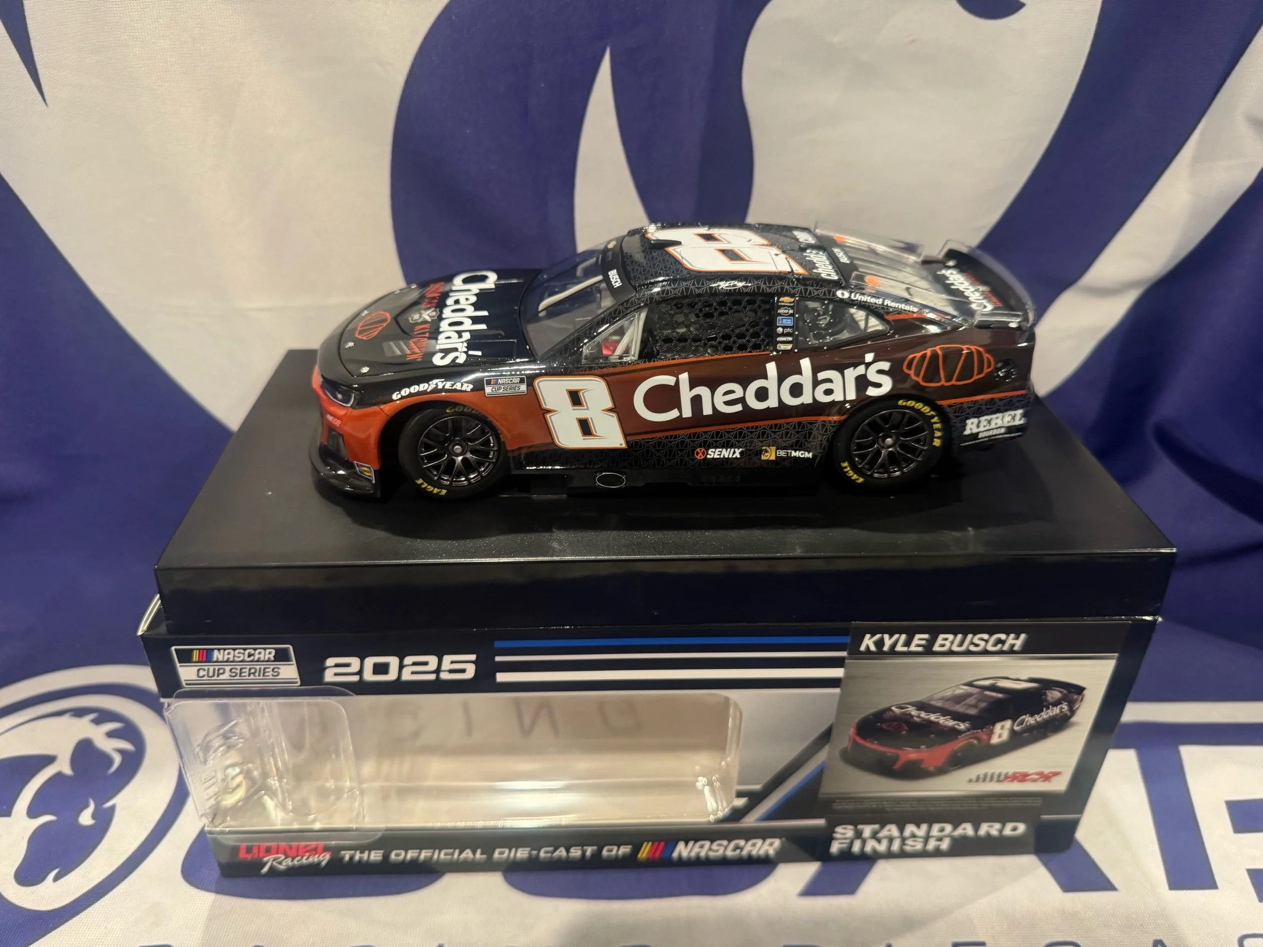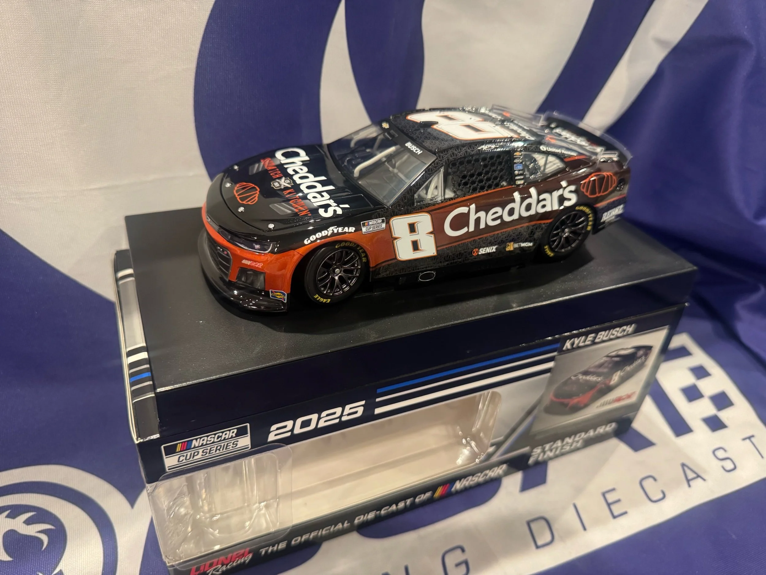 New Diecast › Kyle Busch 2025 Cheddar's 1:24 Nascar Diecast Image 1 of 4 Image 2 of 4 Image 3 of 4 Image 4 of 4 Kyle Busch 2025 Cheddar's 1:24 Nascar Diecast $79.95 Add To Cart Added!