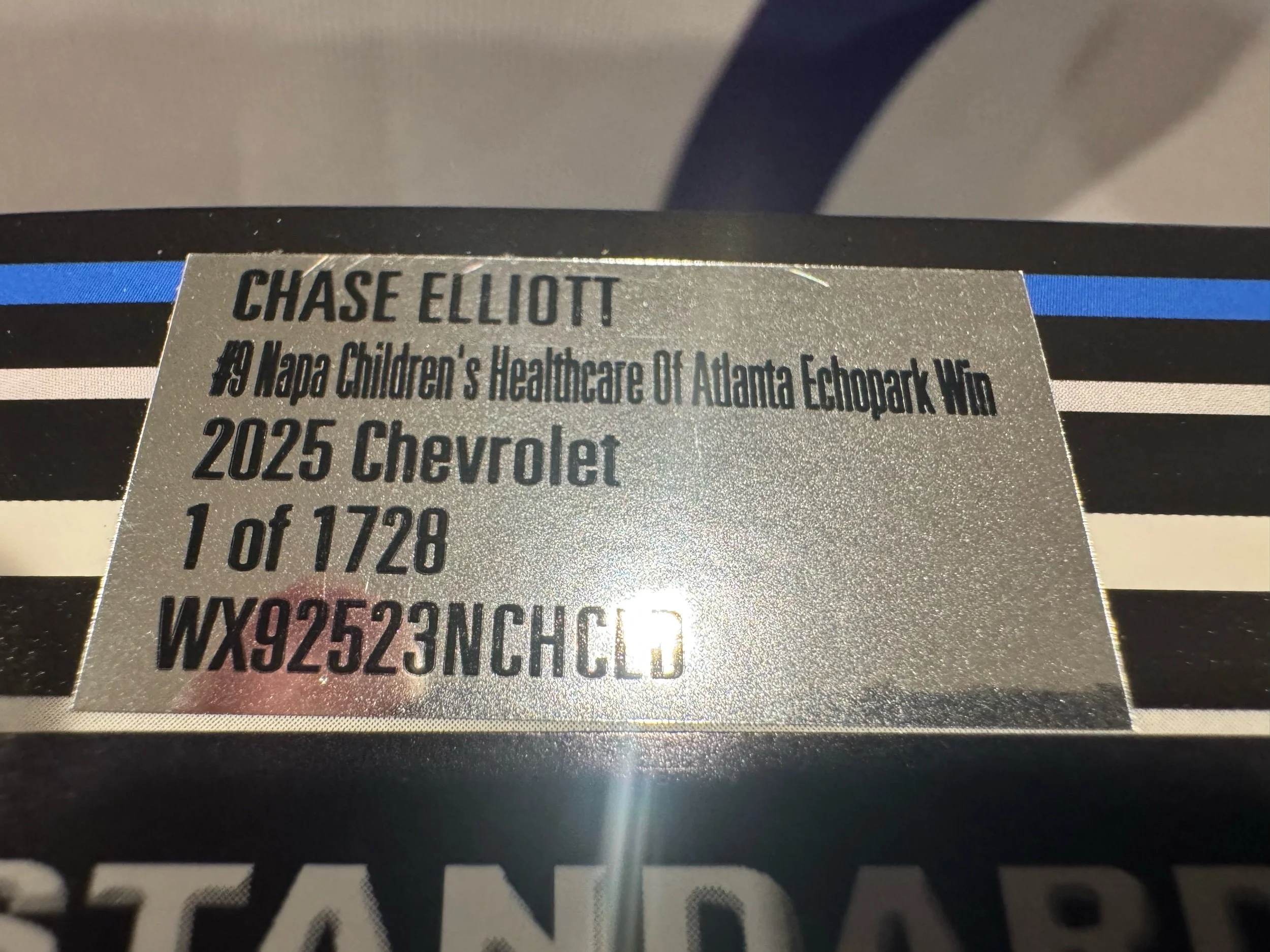 New Diecast › Chase Elliott 2025 Children's Healthcare of Atlanta 6/28/25 Race Win 1:24 Nascar Diecast Image 1 of 4 Image 2 of 4 Image 3 of 4 Image 4 of 4 Chase Elliott 2025 Children's Healthcare of Atlanta 6/28/25 Race Win 1:24 Nascar Diecast $89.95 Sold Out Sold Out Added!