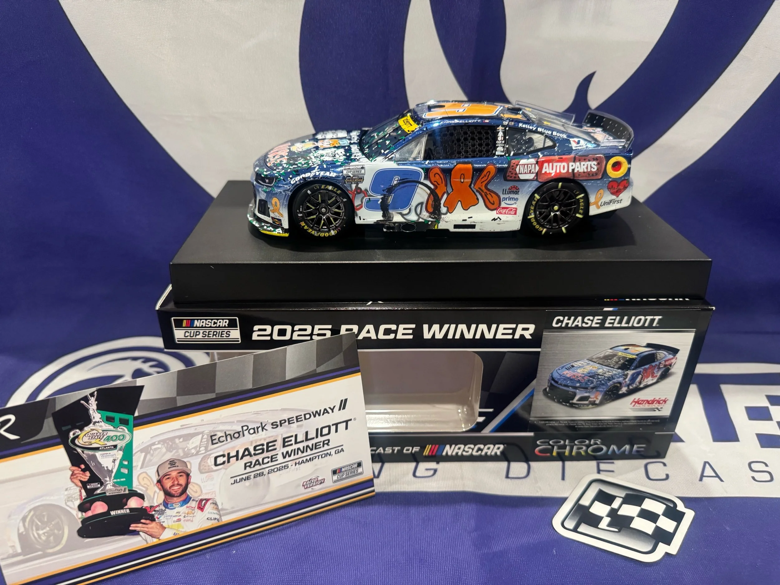 New Diecast › Chase Elliott 2025 Children's Healthcare of Atlanta 6/28/25 Race Win 1:24 Color Chrome Nascar Diecast Image 1 of 4 Image 2 of 4 Image 3 of 4 Image 4 of 4 Chase Elliott 2025 Children's Healthcare of Atlanta 6/28/25 Race Win 1:24 Color Chrome Nascar Diecast $99.95 Sold Out Sold Out Added!